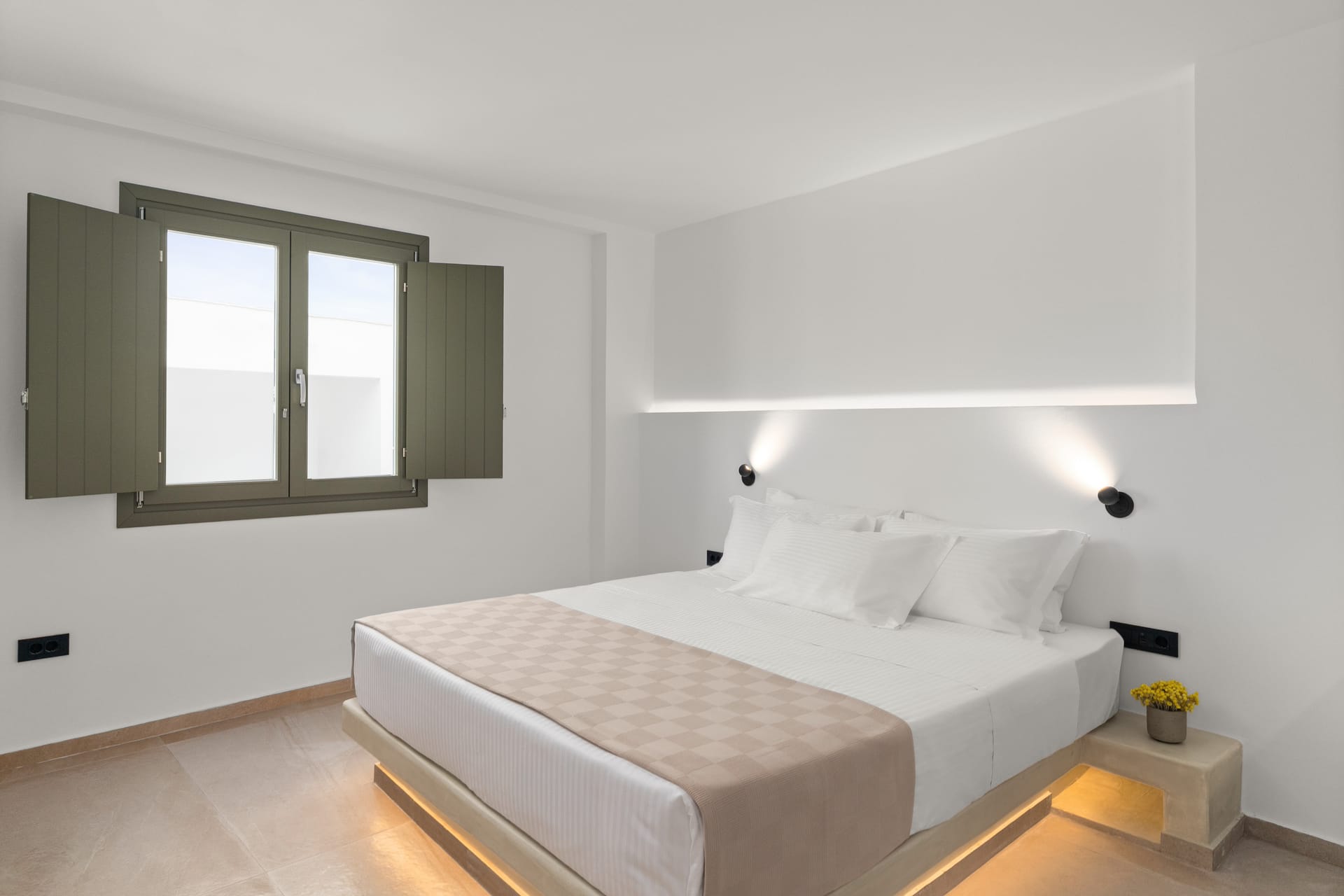 King size bed and one sofa bed, kitchenette, bathroom with walk-in rain shower, and surrounding view.